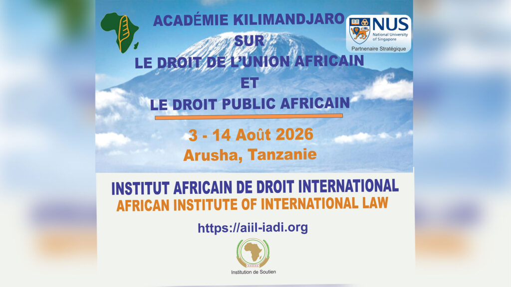 L’Académie Kilimandjaro 2026 se tiendra du 3 au 14 août 2026 à Arusha, Tanzanie. Organisée par l’Institut africain de droit international, cette formation de deux semaines offre une compréhension approfondie du droit de l’Union africaine et du droit public africain. Le programme couvre notamment le panafricanisme, les institutions de l’Union africaine, la paix et la sécurité, […]